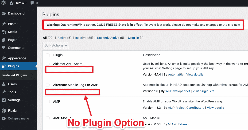 I created QuarantineWP specifically for this purpose, its a pretty simple and straight forward plugin, once you install, it put entire WordPress Dashboard is ‘Code Freeze’ state. Here is what you can’t do